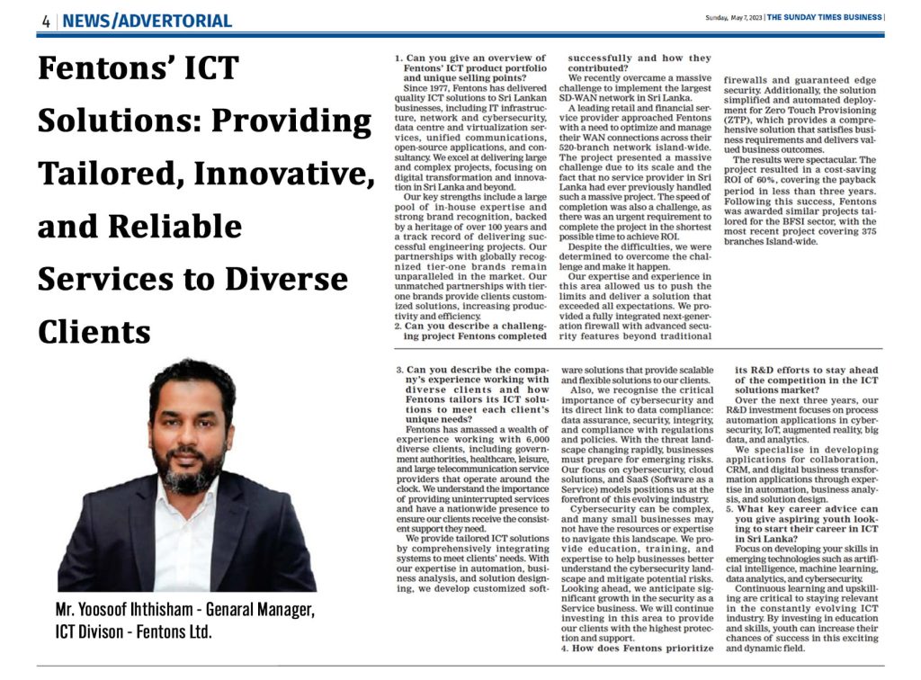 1. Can you give an overview of Fentons’ ICT product portfolio and unique selling points? Since 1977, Fentons has delivered quality ICT solutions to Sri Lankan businesses, including IT infrastructure, network and cybersecurity, data centre and virtualization services, unified communications, open-source applications, and consultancy. We excel at delivering large and complex projects, focusing on digital […]