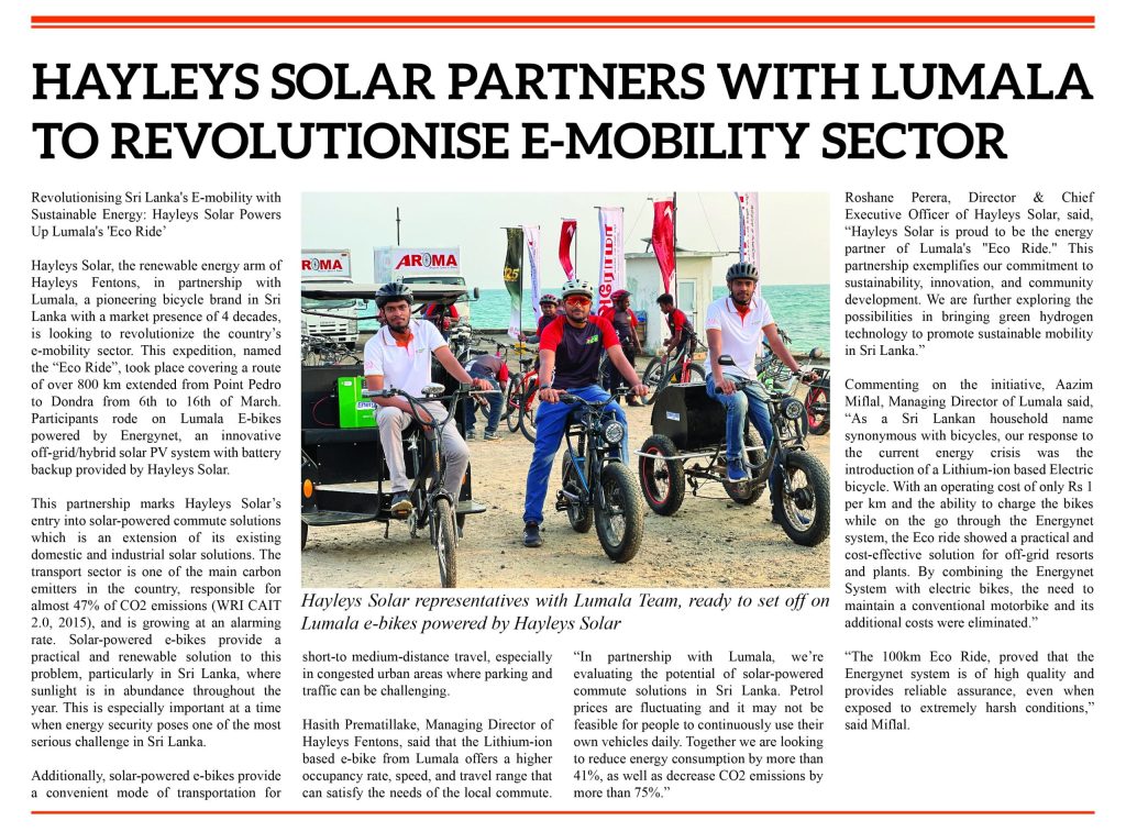 Revolutionising Sri Lanka’s E-mobility with Sustainable Energy: Hayleys Solar Powers Up Lumala’s ‘Eco Ride’