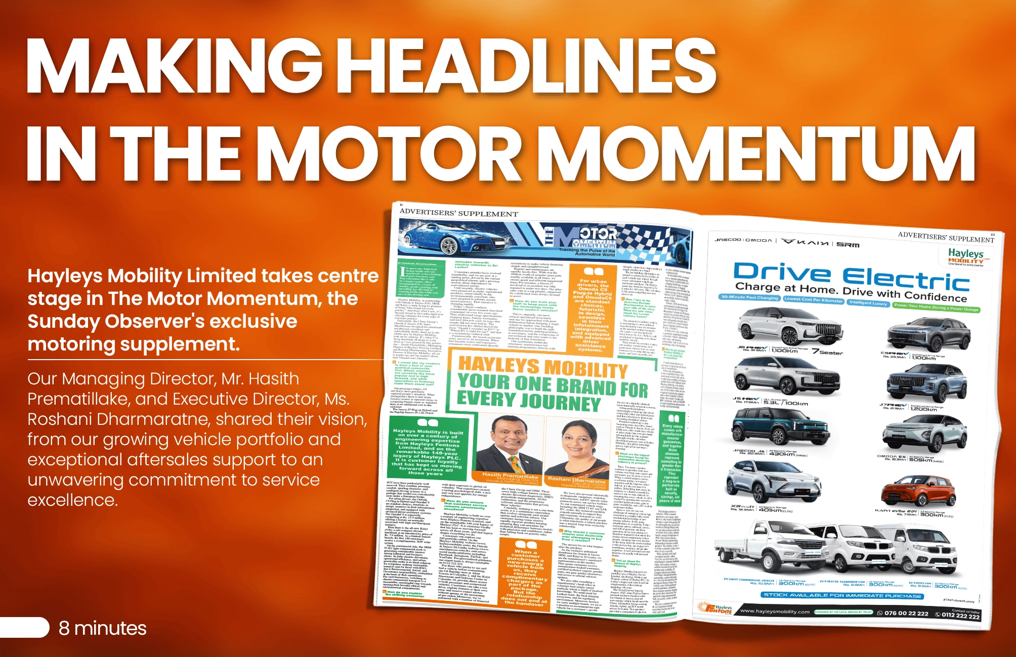 Sri Lanka’s automotive landscape took a decisive step towards cleaner, smarter mobility as Hayleys Mobility Limited, the mobility arm of Hayleys Fentons Limited, officially unveiled